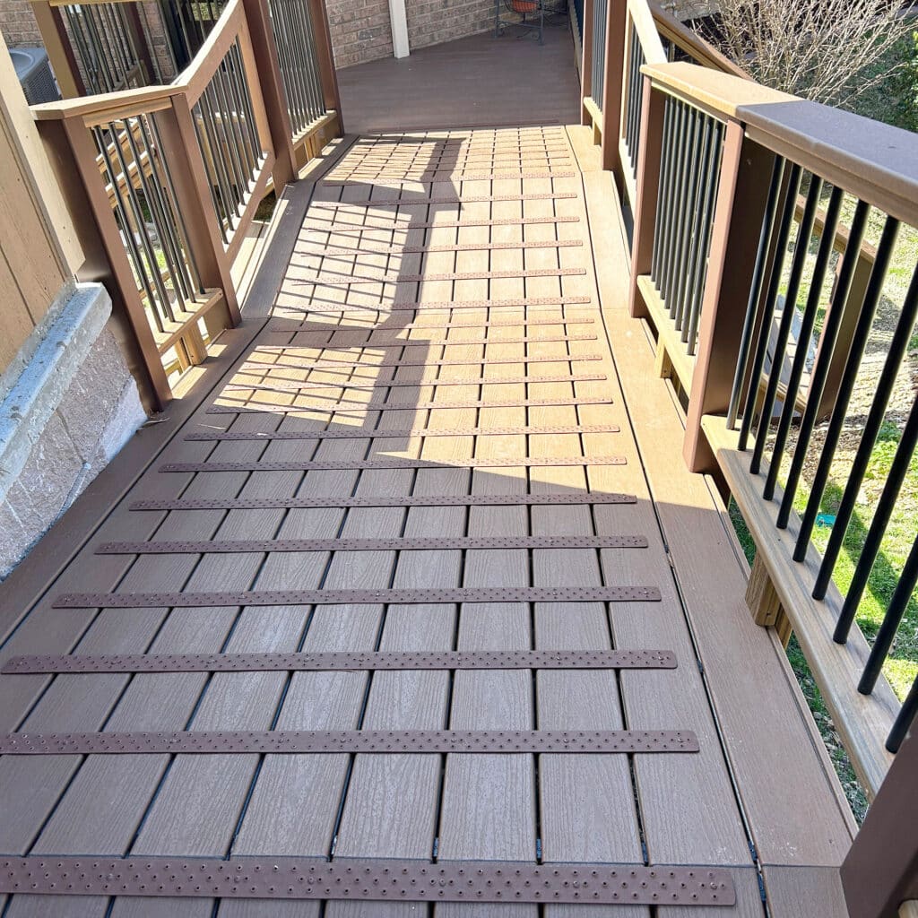 Synthetic wood decks present slip-and-fall conditions in much the same way as natural wood. Constant exposure to inclement weather creates wet conditions where slips and falls can occur. Sometimes the wood deck planks begin to cup, forming a shallow “bowl” that tends to hold water, ice, and snow. A quick freeze will turn the pooling water into a dangerous sheet of ice.
