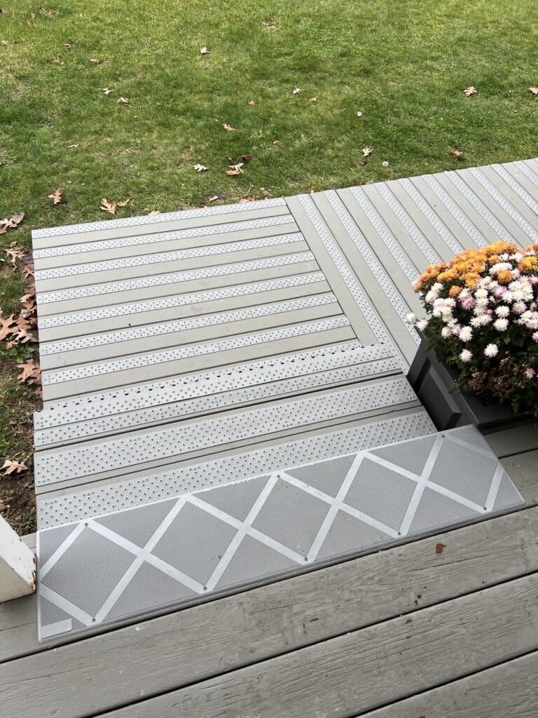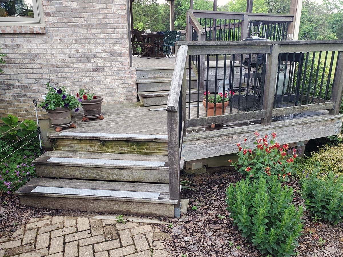 - Improve Traction in High Risk Areas: If all or part of your deck or patio is slippery, you can install devices, like Handi-Treads Non-Slip Deck Treads, at those areas where traction is needed most. Another alternative to a natural wood deck that is slippery is high-quality grit paint like the Slip Doctor Dura Grip and Tuff Grip traction paint that we sell.