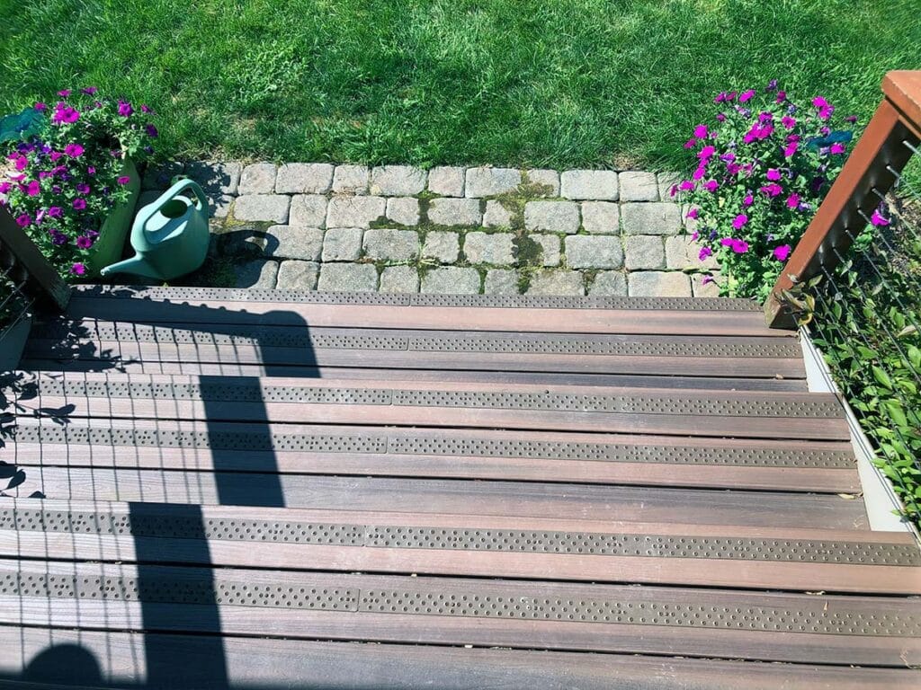 Wood decks, porches, and patios are often overlooked slip-and-fall hazards. Rain, dew, snow, ice, or even the first frost can make a deck or porch landing and steps very slippery. Debris like fallen leaves can also contribute to the dangerously slippery conditions of the steps, causing anyone walking on them to become susceptible to falls and injuries.