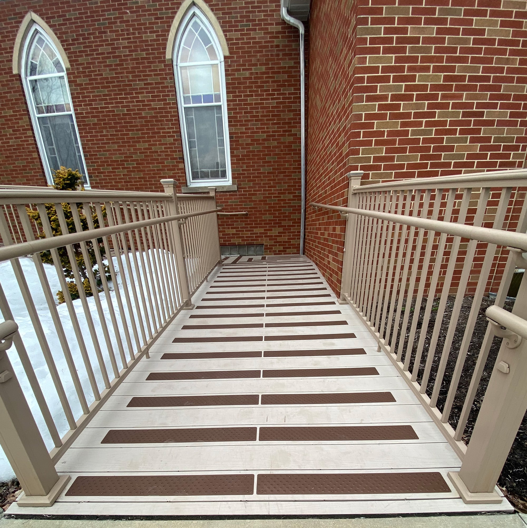 HandiTreads are the permanent solution to slip and fall hazards for homeowners who value both form and function. The non-slip aluminum treads can be easily installed on virtually any surface or architectural structure like steps, ramps, and decks. Available in four elegant earth-toned shades, HandiTreads keep you and your family safe while also maintaining the beauty and design of your home.