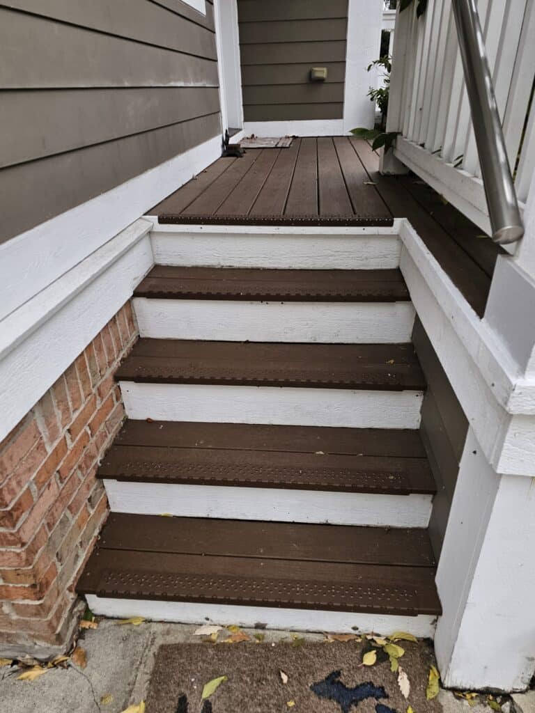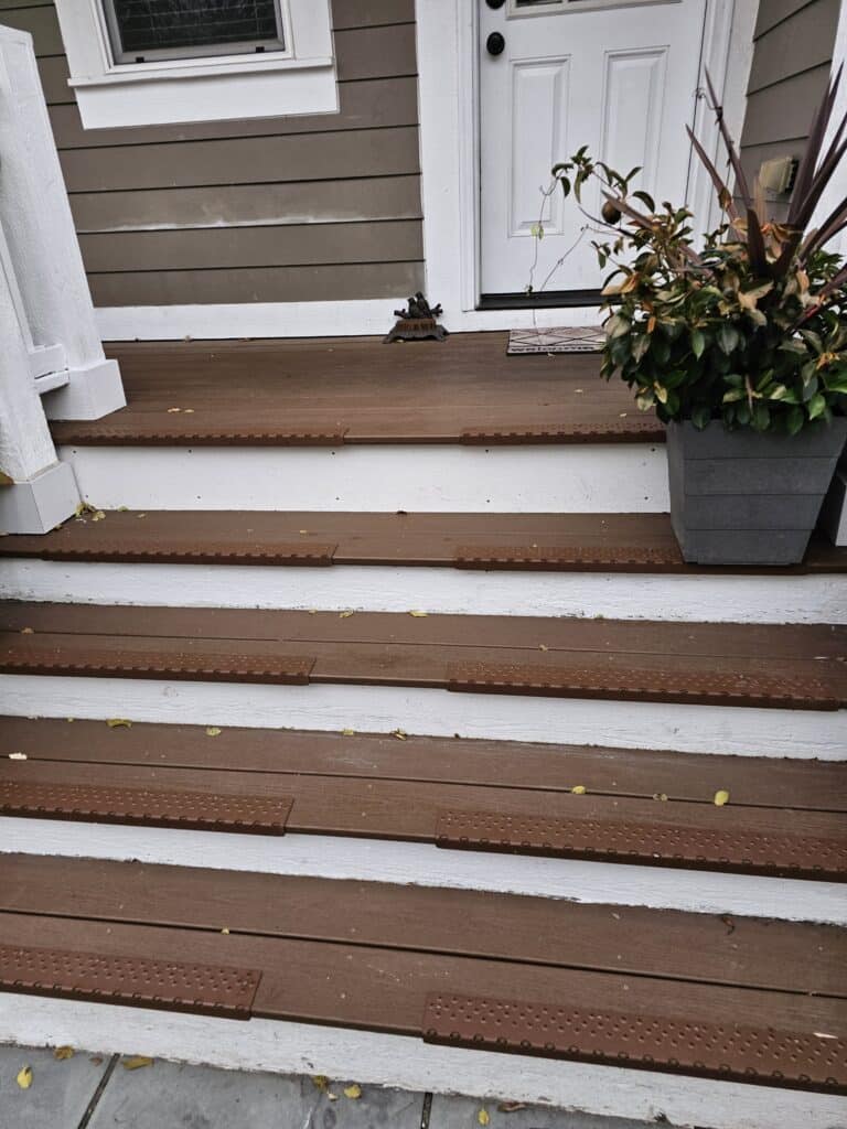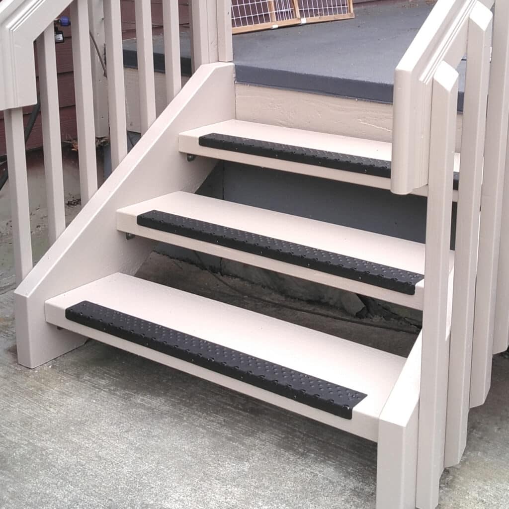 Because HandiTreads Nosings come in deep (6”) and extra-deep (9”) widths, they can cover virtually an entire stair tread, providing the maximum level of traction in the most adverse conditions. HandiTreads Nosings can also be used to improve the structural integrity of cracking or splintering steps, making them the most cost-effective architectural safety solution.